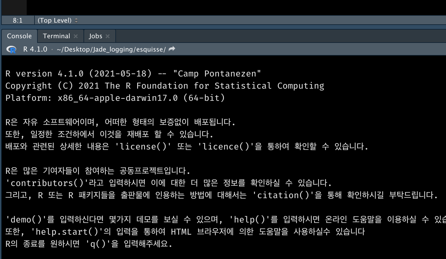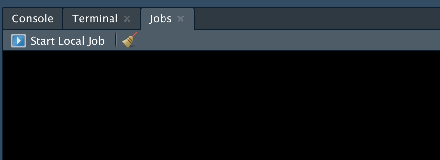 방법은 R Studio에서 Jobs 탭을 활용해보는 것이다. (아래 그림 참고, 콘솔창 옆에 있는 Jobs탭)