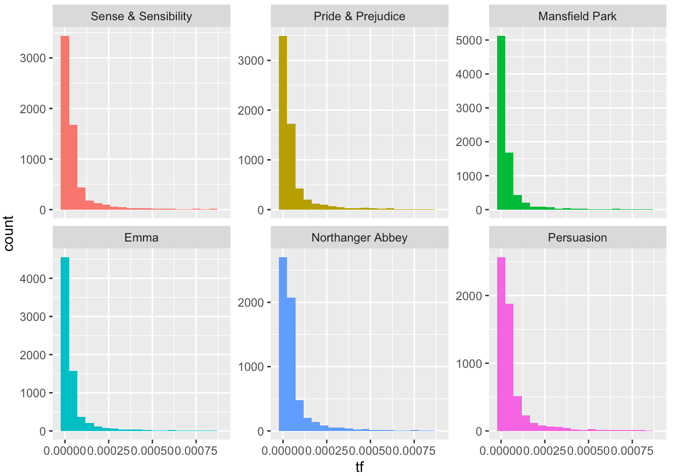 - Jane Austen 데이터를 통해서 Term Frequency(TF)를 확인해보겠습니다.