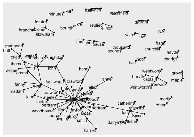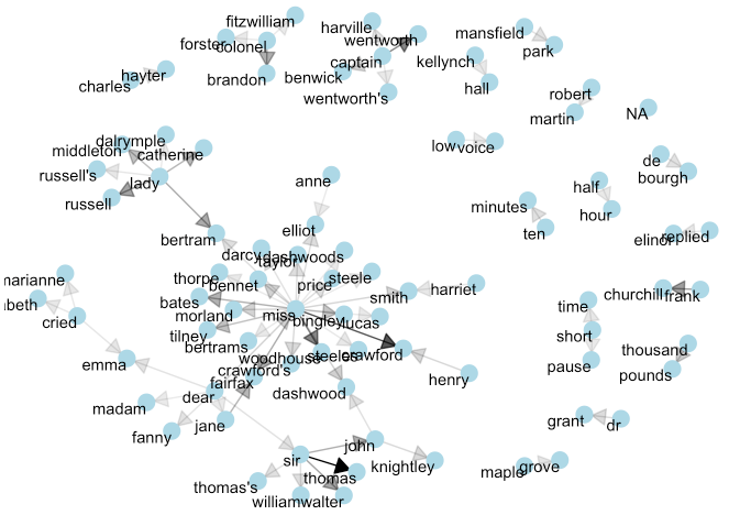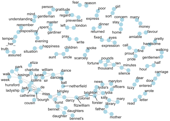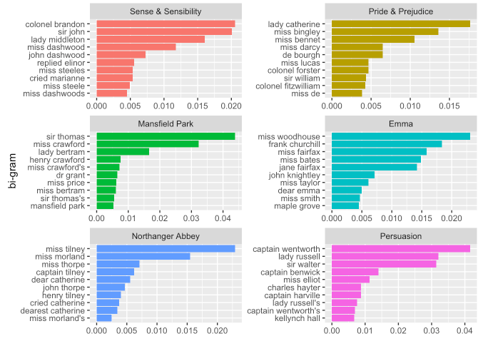 - Jane Austen의 책에서는 이름과 성이 가장 빈도가 높은 한 쌍임을 알 수 있습니다.