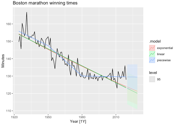 piecewise = TSLM(formula = Minutes ~ trend(knots = c(1950, 1980)))