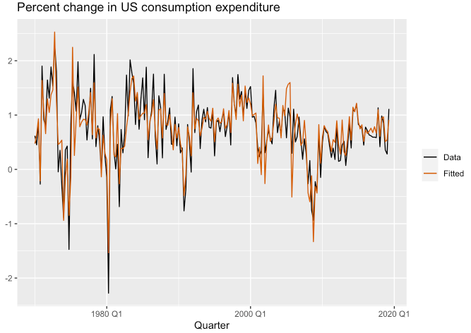model(tslm = TSLM(formula = Consumption ~ Income + Production + Unemployment + Savings))