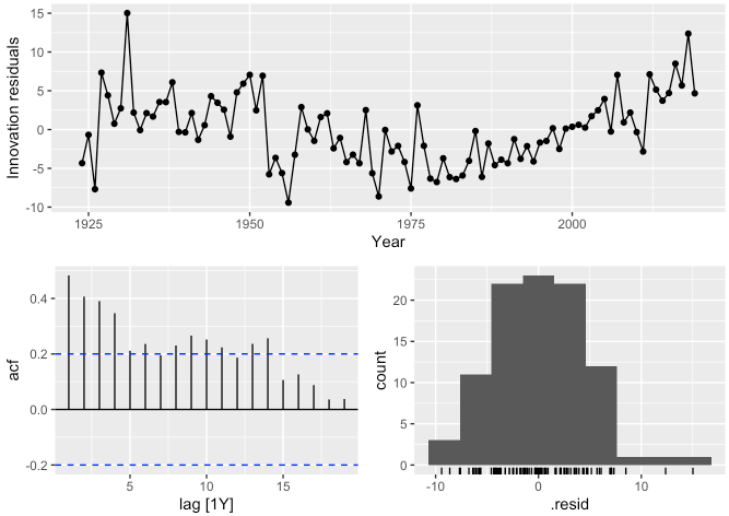 lm()함수와 유사하지만TSLM()은 시계열 처리를 위한 부가 기능이 더 있다고 보시면 될 것 같습니다. - 위 예시를 그대로 이어가겠습니다.