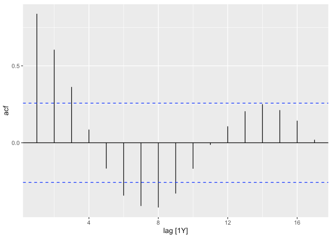 `Annual change in log sales` = difference(log(Cost), 12), # Annual data이기에 12