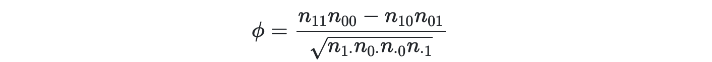 - 아래 표를 가지고 파이 계수를 아래와 같이 정의할 수 있습니다.